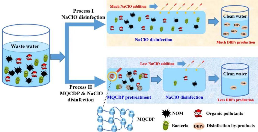 團隊研究磁性季銨化環糊精基樹脂與氯消毒工藝耦合的協同消毒效果及其對消毒副產物削減作用。污水消毒對保障水質安全至關重要。傳統的氯消毒工藝因其簡單、高效而被廣泛使用。但是,氯消毒過程中會產生大量有毒有害的消毒副產物(DBPs),對生態環境和人類健康造成嚴重威脅。為此,課題組研究團隊研制了磁性季銨化環糊精基樹脂材料,與氯消毒工藝進行耦合,研究耦合工藝的協同消毒效果及其對消毒副產物削減作用,研究結果以“Synergistic disinfection effects and reduction of disinfection by-products in water treatment using magnetic quaternized cyclodextrin polymer combined with chorine disinfection process”為題在Water Research(2024, 250:121078)上發表。