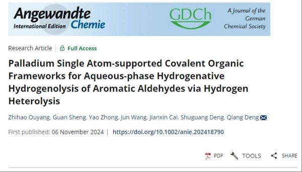 本網訊(化學化工學院)近日,我校化學化工學院鄧強副教授在催化反應工程領域取得最新研究成果,相關成果以“Palladium Single Atom-supported Covalent Organic Frameworks for Aqueous-phase Hydrogenative Hydrogenolysis of Aromatic Aldehydes via Hydrogen Heterolysis”為題發表在Angew Chem. Int. Ed.上,我校碩士研究生歐陽志豪為論文的第一作者,鄧強副教授為論文通訊作者。該研究利用氫氣異裂強化了呋喃醛生成甲基呋喃,是我校化工學科催化反應工程領域的一項標志性成果。