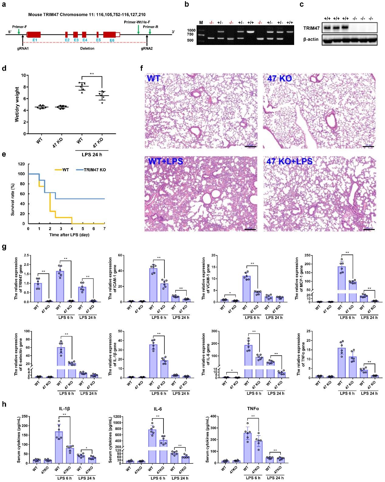 TRIM47基因敲除減輕小鼠急性肺損傷和肺部炎癥(圖片源自Signal Transduction and Targeted Therapy )