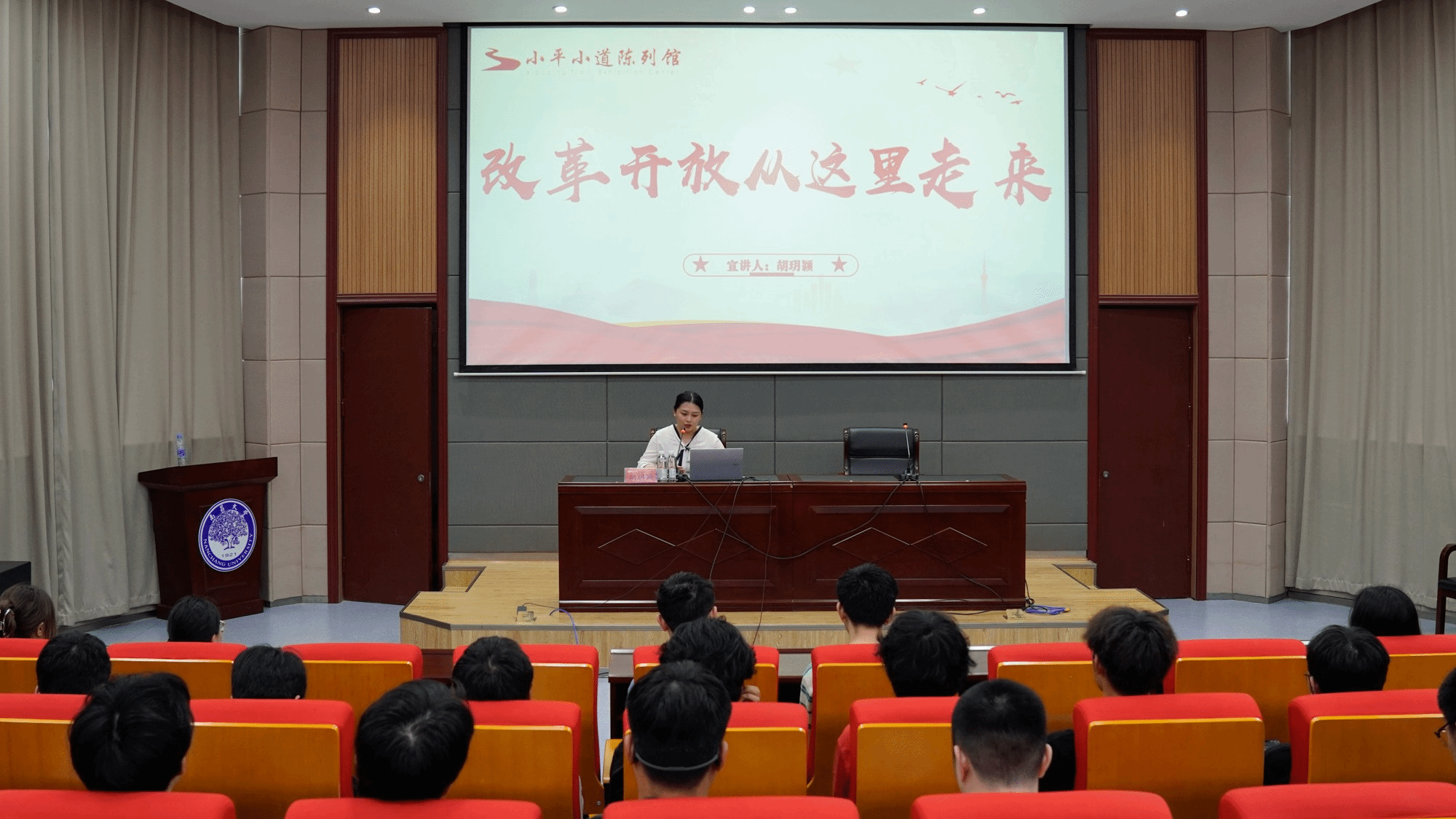 活動伊始,宣講人胡玥穎首先介紹了小平小道的歷史背景和象征意義。她圍繞“行走泥濘小道,探索改革之路”“領導全面整頓,主抓科學教育”“開創中國特色社會主義道路”三個核心部分帶領同學們追憶鄧小平同志的生平經歷,探索領悟鄧小平同志身上的偉大精神。