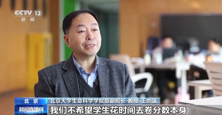 北京大學(xué)生命科學(xué)學(xué)院原副院長(zhǎng) 教授 王世強(qiáng):培養(yǎng)學(xué)生的角度,我們不希望學(xué)生花時(shí)間去卷分?jǐn)?shù)本身,而是希望在學(xué)了基本原理之后,能夠有更多的實(shí)踐環(huán)節(jié),能夠運(yùn)用這些原理去解決實(shí)際問題,有更多的時(shí)間去參加一些比如說交叉學(xué)科的學(xué)習(xí),在這個(gè)過程中鍛煉他們的創(chuàng)新能力,解決比如現(xiàn)在卡脖子問題的這樣一些素質(zhì)。