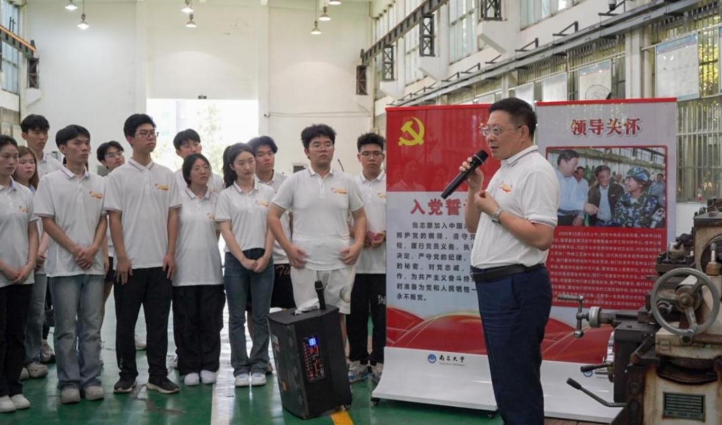 在南昌大學工程訓練中心,隊員們參觀了“數控銑”車間和機床,學習領悟習近平總書記對南昌大學建設發展的深情寄語和對青年學子成長成才的殷殷囑托。南昌大學黨委書記羅嗣海帶領實踐隊重溫了習近平總書記兩次視察南昌大學時的重要講話精神,他指出,習近平總書記視察南昌大學時的重要講話精神是南昌大學的寶貴財富,這不僅為學校發展指明了方向,更為青年學子們的成長提供了強大的精神動力,他激勵同學們追尋習近平總書記考察江西的足跡,在實踐中奉獻社會,成就自我。馬克思主義學院教師鐘貞山結合理論和實際案例,為實踐隊員講授微黨課,引導實踐隊員在愛國主義教育中深化擔當民族復興大任的責任感。
