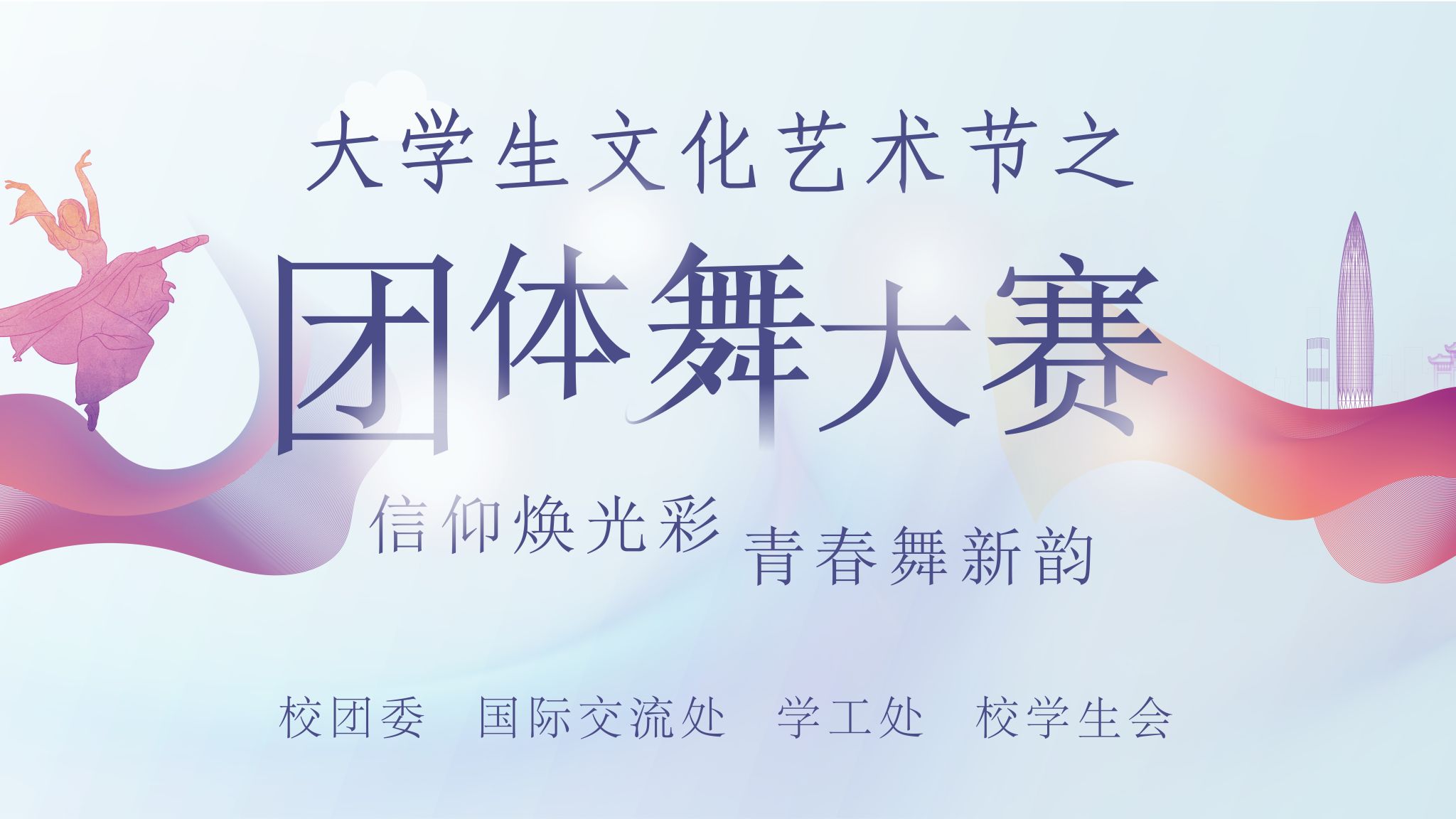進一步豐富校園文化生活,激發學生自我教育的內生動力,推進體育強國建設,優化美育體育培養路徑,營造向真向善向美向上的校園文化氛圍,展現當代大學生的志氣、銳氣,積極向上的精神風貌,經研究決定舉辦南昌大學2024年大學生文化藝術節信仰煥光彩·青春舞新韻團體舞大賽。
