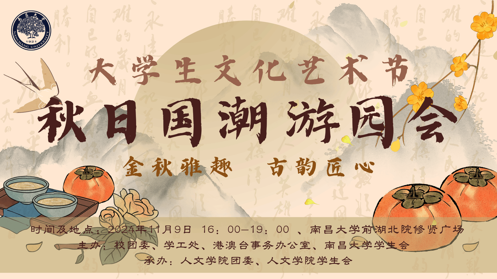 2024 年大學(xué)生文化藝術(shù)節(jié)之 “金秋雅趣,古韻匠心”秋日國潮游園會(huì)