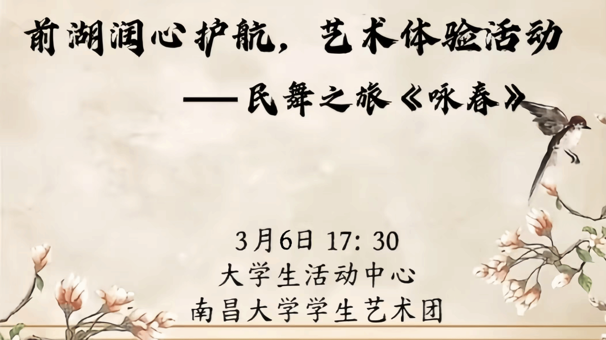 時間 2025年3月6日17:30 地點 南昌大學大學生活動中心
